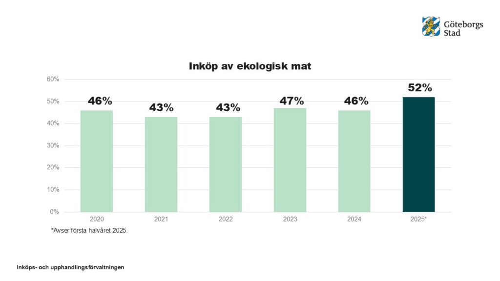 Under första halvåret 2025 köpte Göteborgs Stad totalt in 52 procent ekologisk mat på de gemensamma avtalen. Foto: Lo Birgersson